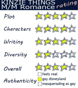 There were times when I got a little taken out of the plot by the fact that almost everyone is gay. But, that’s what we’re here to read, right? So, it’s not really that big an issue.