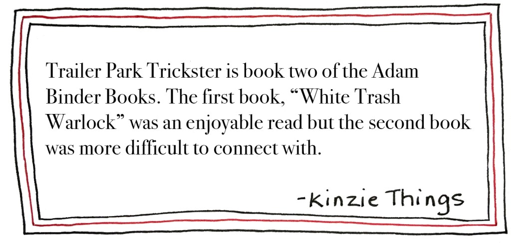 Trailer Park Trickster is book two of the Adam Binder Books. The first book, “White Trash Warlock” was an enjoyable read but the second book was more difficult to connect with.