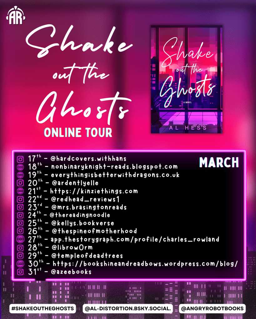 I was provided with an ARC of Shake Out the Ghosts by Angry Robot Books in exchange for an unbiased review.